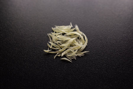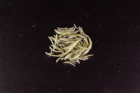 Cut fingernails pile on dark surface isolated background