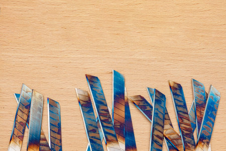 blue steel shavings with visible details. background or texture