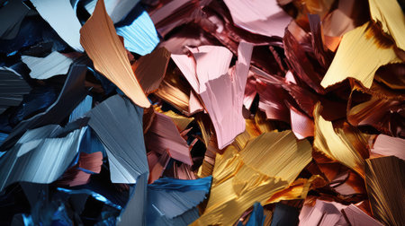 Macro detail of small remains of colored plastic, used in industry. Ai generated.