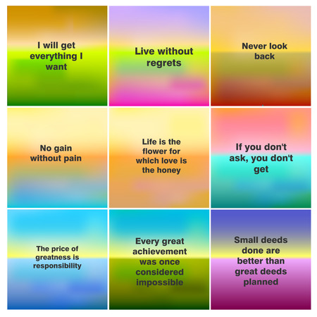 Set of 9 blurred nature background. With various quotes