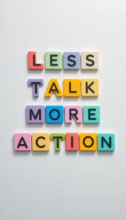 Colorful letter blocks spell out a motivational phrase on a clean white background, perfect for inspiring creativity and action in various projects.