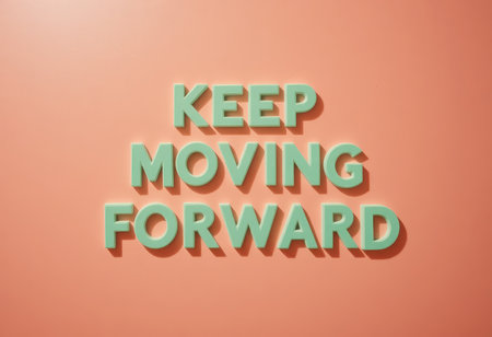 This vibrant artwork features the motivational phrase Keep Moving Forward in green text against a coral background, perfect for inspiring positivity and determination.
