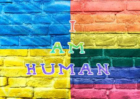 A colorful brick wall with the words I am human written on it