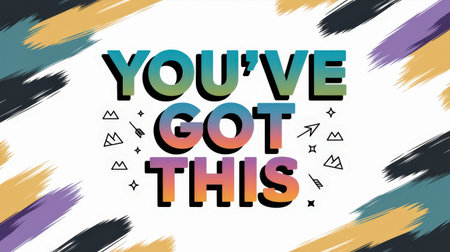 Motivational poster with colorful text YOU'VE GOT THIS surrounded by abstract brush strokes and doodles, encouraging positivity and determination.
