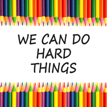 Support, help we can do hard things symbol. Concept words We can do hard things on beautiful paper. Beautiful white background. Colored pencils. Business we can do hard things concept. Copy space.