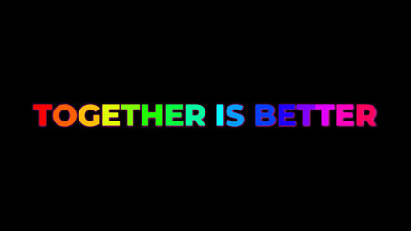 together is better motivational phrase in vibrant rainbow colors on black background teamwork collaboration concept