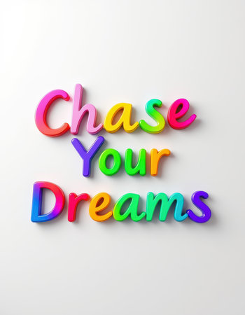 Inspiring colorful letters spell chase your dreams on a white surface encouraging positivity and motivation