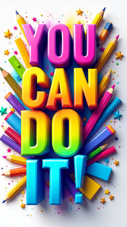 Text You Can Do It with Playful Typography, School Supplies, and Motivational Elements