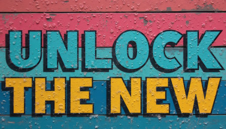 This striking image features the phrase Unlock the New in bold, playful typography, set against a backdrop of vibrant pink and blue stripes. The design is enhanced by a textured surface, suggesting a sense of freshness and excitement, perfect for inspiring creativity and new beginnings.