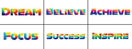 Vector illustration of a set of the words Dream Big in rainbow colors.