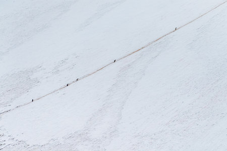 hiking people aerial from above walking in snow