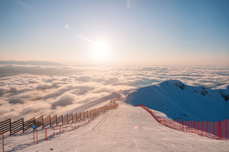 Ski piste on north slope of the mountain Chopok on background of a sky on ski resort Jasna in Low Tatras mountains, Slovakia