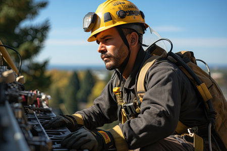 High-Voltage Power Line Technician: A technician works on power lines at great heights, ensuring electricity supply.Generated with AI