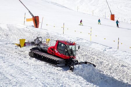 machine for snow preparation tractor on a mountainside, snow clearing and leveling