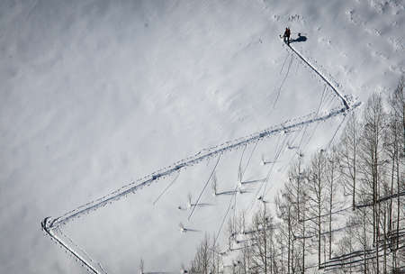 Snow covered mountain peak winter and worker