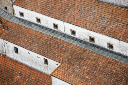 Roofing, tiles on the roof of a building, traditional architecture, texture photo. Portugal