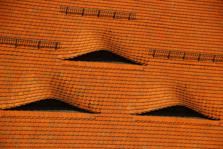 Old red roof tiles in european style