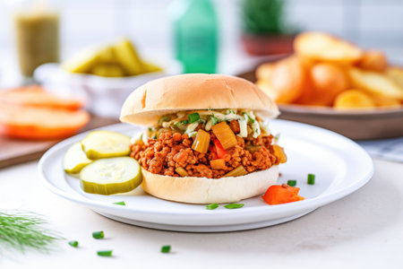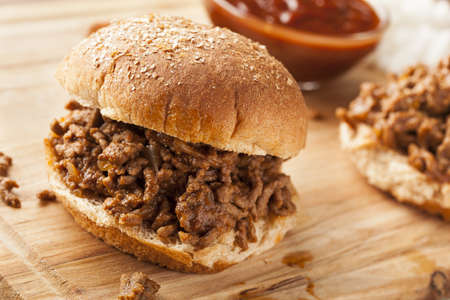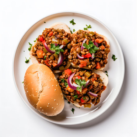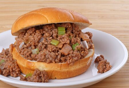 Classic sloppy joe sandwich with fresh toppings.