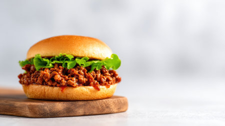 Sloppy joe sandwich with seasoned beef on a wooden table