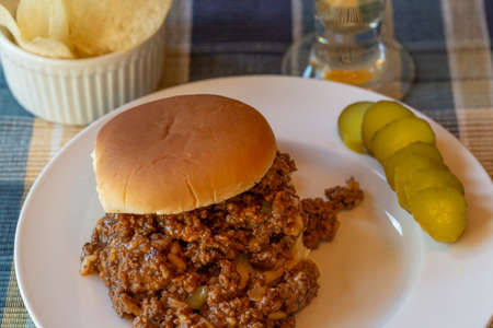 Homemade BBQ Sloppy Joe Sandwich with Chips