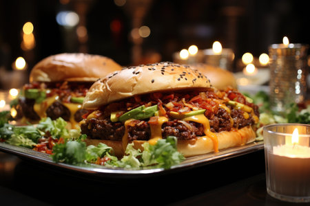 A chili hamburger at a graduation party with elegant decoration., generative AI