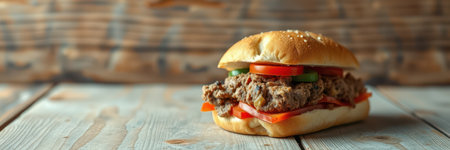 Sloppy Joe in wood background close up. AI Generative