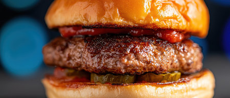 Delicious grilled burger with juicy patty and melted cheese