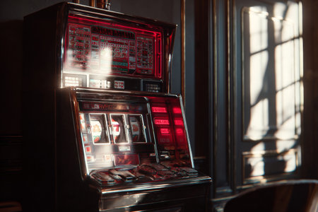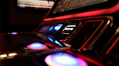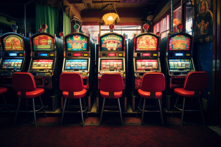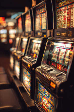 Modern One Handed Bandit Slot Machines Inside a Casino. Gambling Industry Theme.