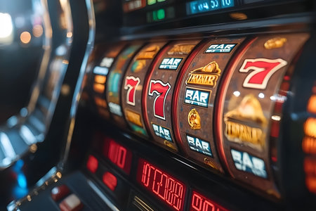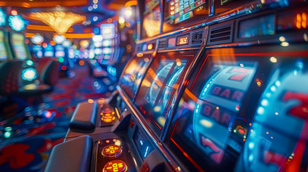 Slot machines, Las Vegas, Nevada. Blurred background. Gambling, Addiction Themed