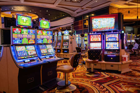 Rows of casino slot machines. Las Vegas, Nevada, USA February 24th, 2020