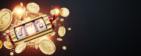 Golden slot machine wins the jackpot. 777 Big win concept. Casino jackpot.