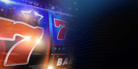Dark Conceptual Slot Machine Gambling Banner Background. Las Vegas One Handed Bandit Theme with Right Side Copy Space.