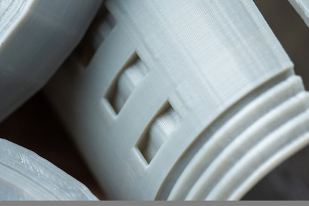 Macro detail of plastic parts printed on a 3D printer, fdm technology.