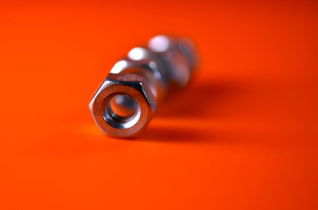 Tap bolts with nuts on color background