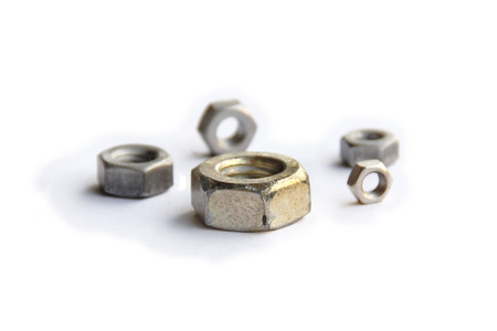 Used and new nuts for manufacturing and industry with white background