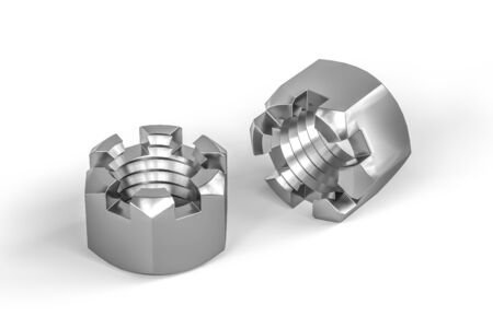 Stainless steel nut slotted isolated on white background - 3d render