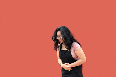 Teenage woman with early pregnancy appears sad, worried and in pain living in poverty and without education