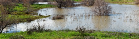 The stream flowing through the reeds in early spring - in the floodplains in the reserve