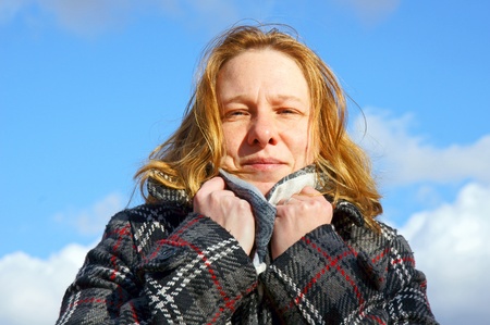 Woman shivering, wrapped in scarf, suggesting chills from viral flu or cold. Focus on maintaining body warmth and proper illness care. Concept of healthcare, medicine, infection and treatment. Ad.