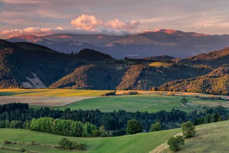 Rural landscape of Turiec region at the foothills of Velka Fatra mountain range, Slovakia.