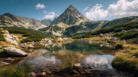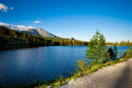 Beautiful mountain lake landscape. Popradske Pleso, Tatra National Park, Slovakia.