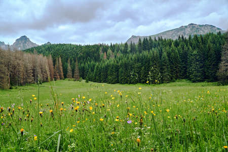 Colorful flowers blooming in the mountains. Tatra in Poland