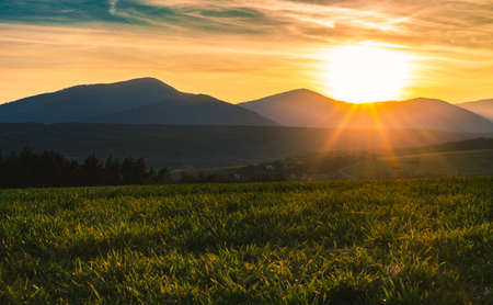 Sunset in the mountains. Countryside landscape in summertime.