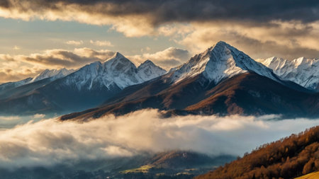 The Krivan hill surrounded by clouds in autumn, mountain in The High Tatras National Park, Slovakia, Europe.