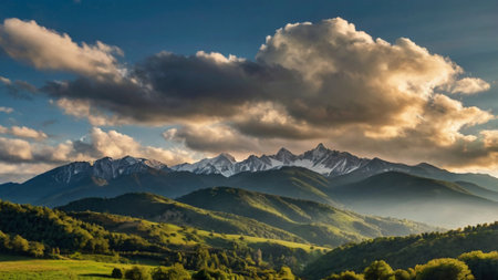 Sunset in the mountains. Dramatic sky over the mountains. Carpathians, Ukraine