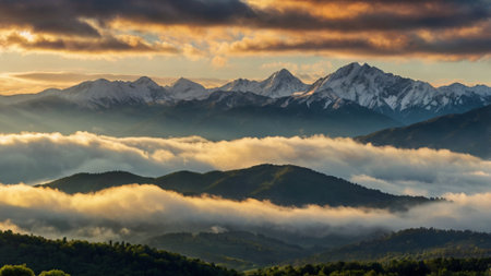 Mountain sea of clouds sunrise natural landscape