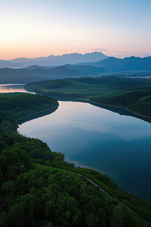 Landscape view on region Liptov and lake Liptovska Mara from hill Babky in Western Tatras.