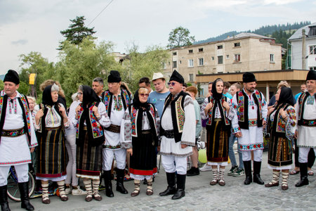 Unidentified people in traditional costume at the annual holiday Vatra Dornei