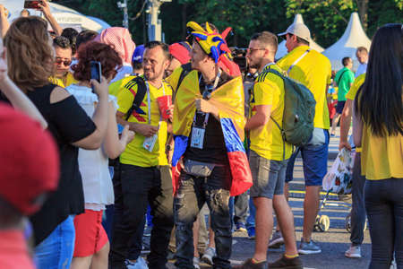 Moscow, Russia - June 28, 2018: Fans of the Colombian football team at the FIFA Fan Fest 2018 on Sparrow hills in Moscow