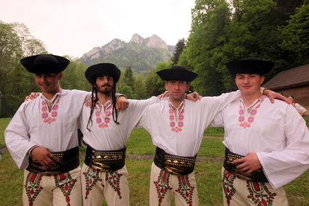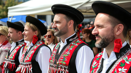 Anonymous group of people in folklore costumes